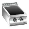The sealed 6mm ceramic top offers high cleaning comfort thanks to the flat surface and cleanable glass ceramic. It is watertight fixed to the AISI 304 stainless steel pressed worktop, thickness 1,5 mm. In the infrared heating plates models, the heat is produced by means of electric elements underneath and transmitted by diffusion. Independent temperature regulation for each cooking area. Indicator lights show when each hotplate is in operation.