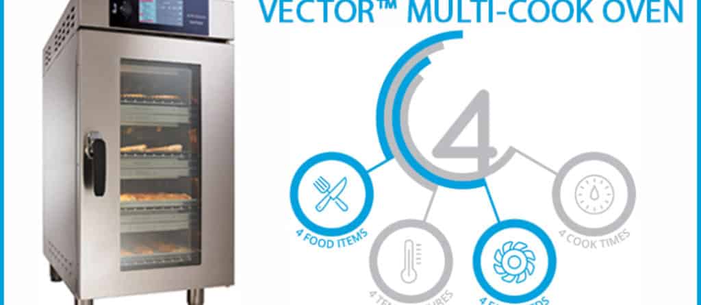 The smallest Vector is the two-chamber VMC-H2H, which measures 533mm wide by 993mm deep and 724mm high. The three-chamber model, the VMC-H3H measures 533 wide by 993mm deep and 904mm high. The largest Vector multi-cook oven is the four-chamber VMC-H4H which also has a small footprint at just 533mm wide, 993mm deep and 1082mm